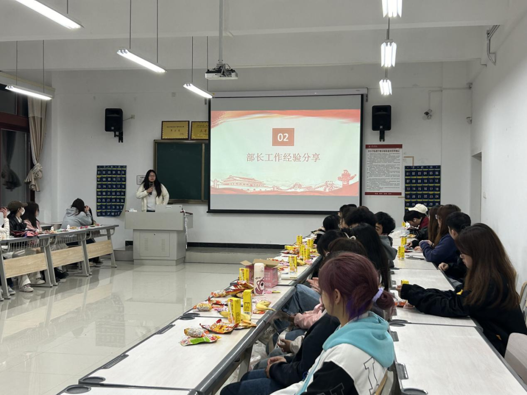 会议伊始,李梦迪同学代表校团委对新加入的成员表示热烈欢迎,她鼓励新成员们在大学生活中脚踏实地、砥砺奋斗、追逐梦想、收获喜悦。各部长逐一发言,与成员交流工作经验、分享工作方法。他们强调各成员在开展各项活动的过程中要严格要求自己,听从指挥,服从安排,恪尽职守,为团组织建设贡献出自己的一份力量。