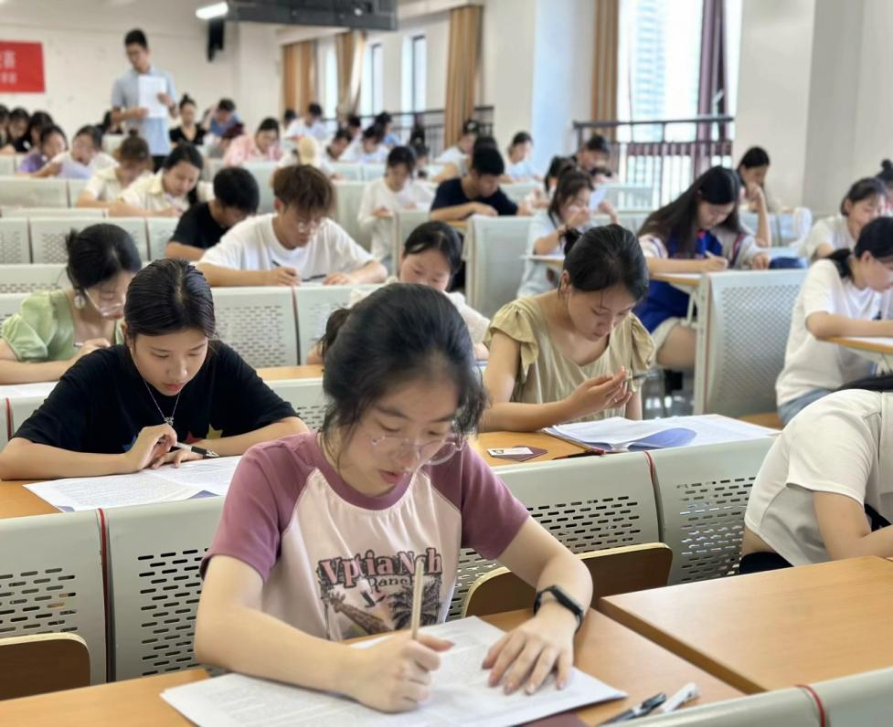 图为监考教师认真巡考,参赛选手们正积极认真作答。