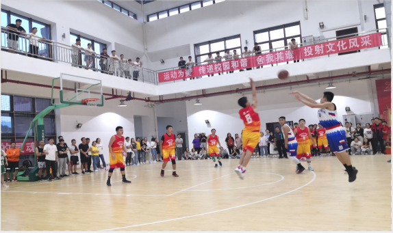 赛场上,篮球健儿们士气如虹,快攻、妙传、你争我夺,攻守自如,越战越激烈,一个个精彩的三分球和飞越扣篮将比赛带入一波又一波高潮。