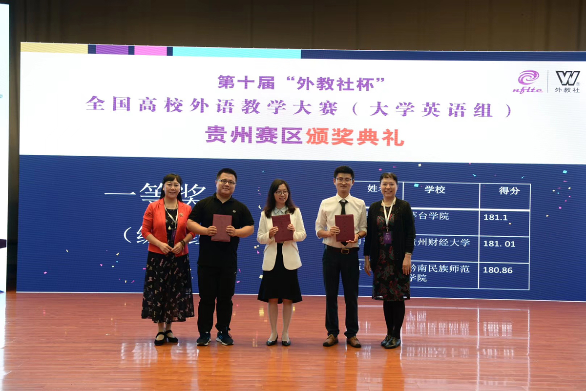 2019年5月18-19日“外教社杯”全国高校外语教学大赛贵州赛区复赛和决赛在贵州师范学院举行,来自贵州省19所高校38名选手参加。本次大赛分为大学英语视听说课程组和综合教程组分别进行。18日的复赛采用的是授课综述和讲课形式,来自各所高校的优秀选手们都发挥了很好的水平,竞争非常激烈,来自我院公共基础教学部英语教研室的杨明兴老师和商亮老师面对强手,认真准备,沉着应战,最后杨明兴老师获得综合课程组第三名,商亮老师获得了综合课程第五名的好成绩,双双进入决赛。19日的决赛采取的是说课和回答问题的比赛形式,选手提前30分钟抽取说课材料,然后根据所获得的材料进行教学理念、教学目标、教学方法、教学过程以及教学过程的说课,并回答评委问题,非常具有挑战性。在比赛过程中,437必赢会员中心的两位老师表现非常突出,最终杨明兴老师获得了本次大赛视听说课程一等奖、商亮老师获得了综合课程二等奖的优异成绩,为437必赢会员中心争得了荣誉!