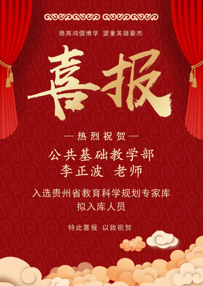 李正波老师入选贵州省教育科学规划专家库拟入库人员