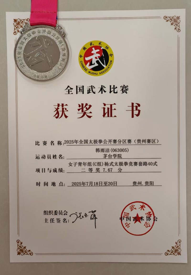 2025年7月18日-20日,由国家体育总局武术运动管理中心、中国武术协会、贵州省体育局主办的2025年全国太极拳公开赛(贵州赛区)在贵州省贵阳市举行,共有106支代表队、1000多人参赛,我校代表队经过努力拼搏,取得了较为优异的成绩。