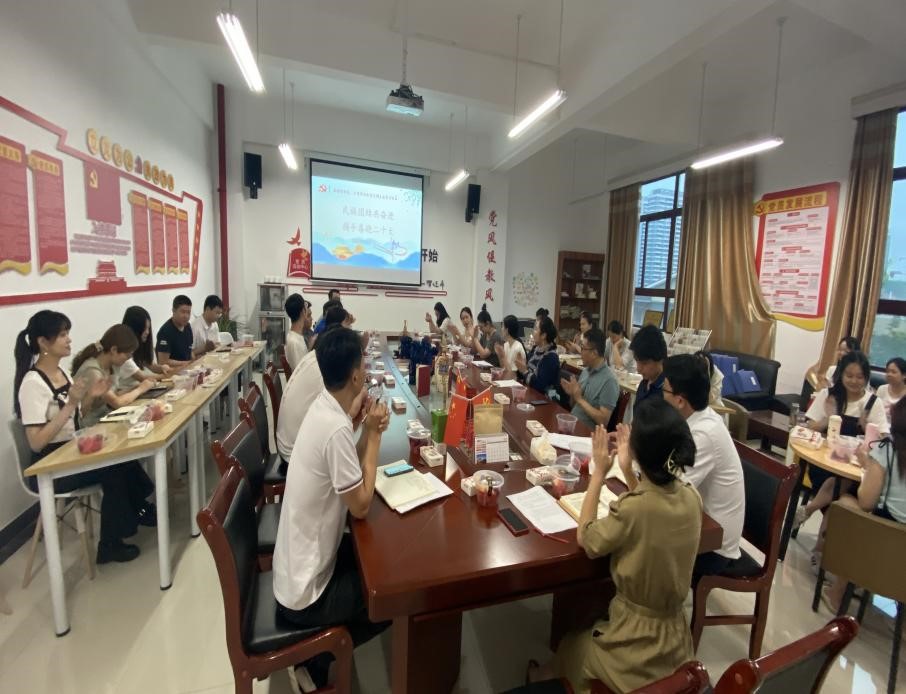 主题党日活动于2022年7月27日下午在A1-321旅游管理系党支部党员活动室召开,活动由旅游管理系党支部副书记吴叔娥同志主持,两支部全体党员教师、少数民族教职工和统战人士参加。