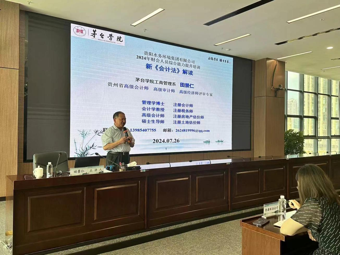 为增强财会人员风险意识,进一步规范公司会计行为,提高公司会计信息质量,防范各类财会工作潜在的违法违规风险,7月26日,工商管理系田景仁教授受邀为贵阳水务环境集团有限公司举办新修订《中华人民共和国会计法》解读专题讲座,80余名财务负责人及财会人员聆听讲座。