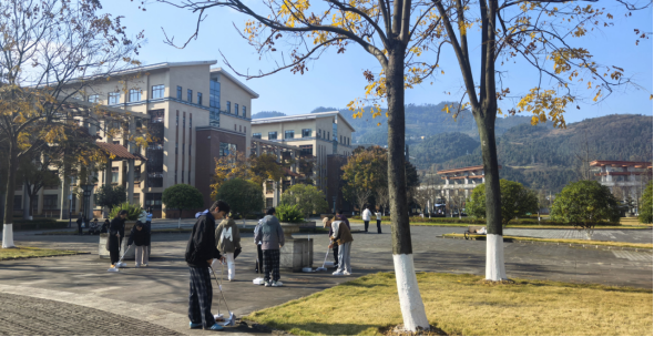 参与人员分工协作、细致尽责,对校园进行全方位清扫,连草丛中的零散落叶都逐一清理。经过共同努力,被落叶覆盖的路面与草坪恢复整洁,阳光映照下的校园更显清爽活力。