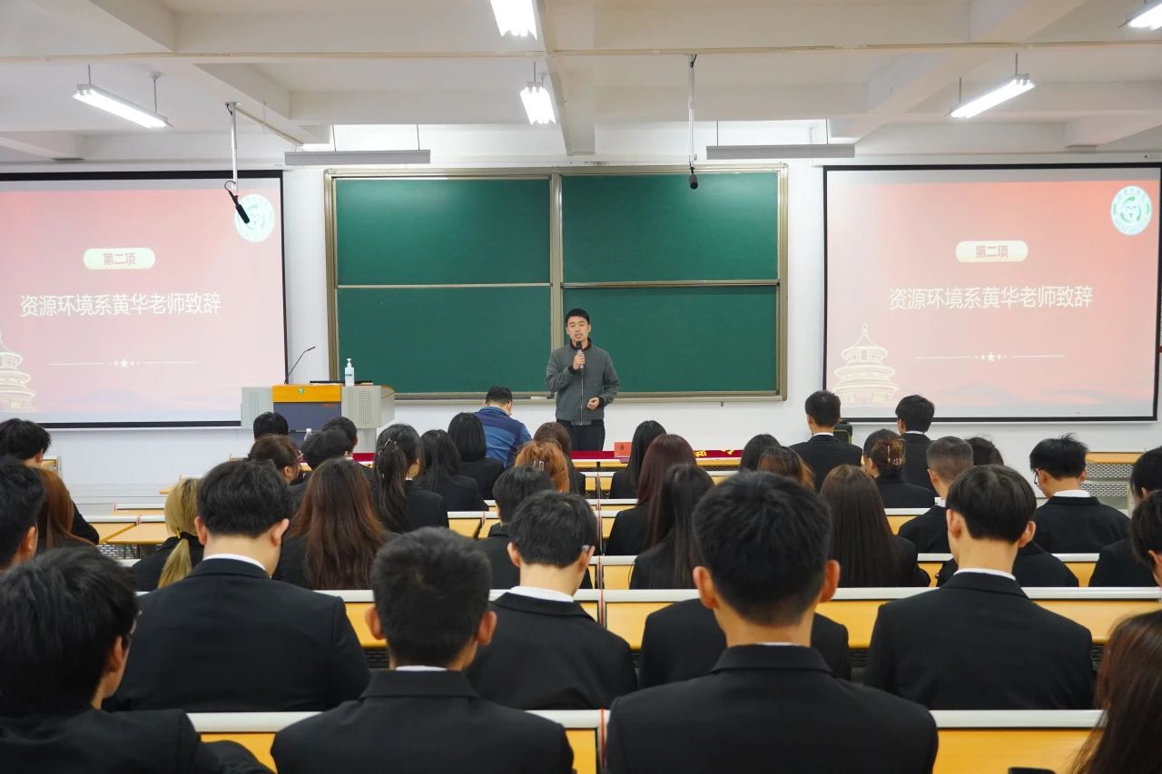 大会伊始,全体起立,奏唱中国共产主义青年团团歌。黄华老师上台发言,他对上一届团学组织干部们表示了充分的肯定,并强调,团学组织干部作为团学工作的中坚力量,要充分发挥桥梁和纽带作用,在自我管理、自我教育的过程中努力提升能力素养,谨记服务宗旨,树立良好形象,并勉励新一届团学组织干部继承优良作风,开创团学工作新局面,为资源环境系团学工作高质量发展注入新动能。