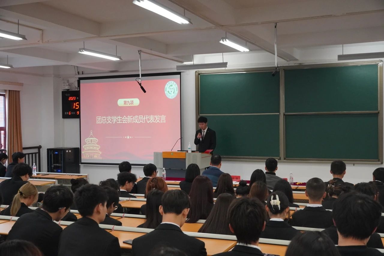 资源环境系第六届学生会新成员代表周奕汛上台发言。他表示作为学生组织的一股新鲜血液,不但要延续往届的优良传统,而且要有新的理念、新的内容,以组织信赖,同学满意为目标,认真负责地为同学服务,促进团学组织在新的征程中创造更加辉煌的成绩。