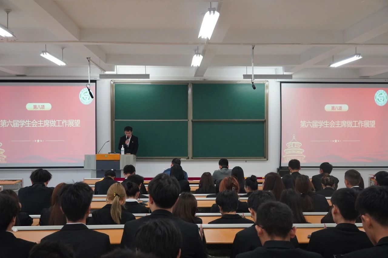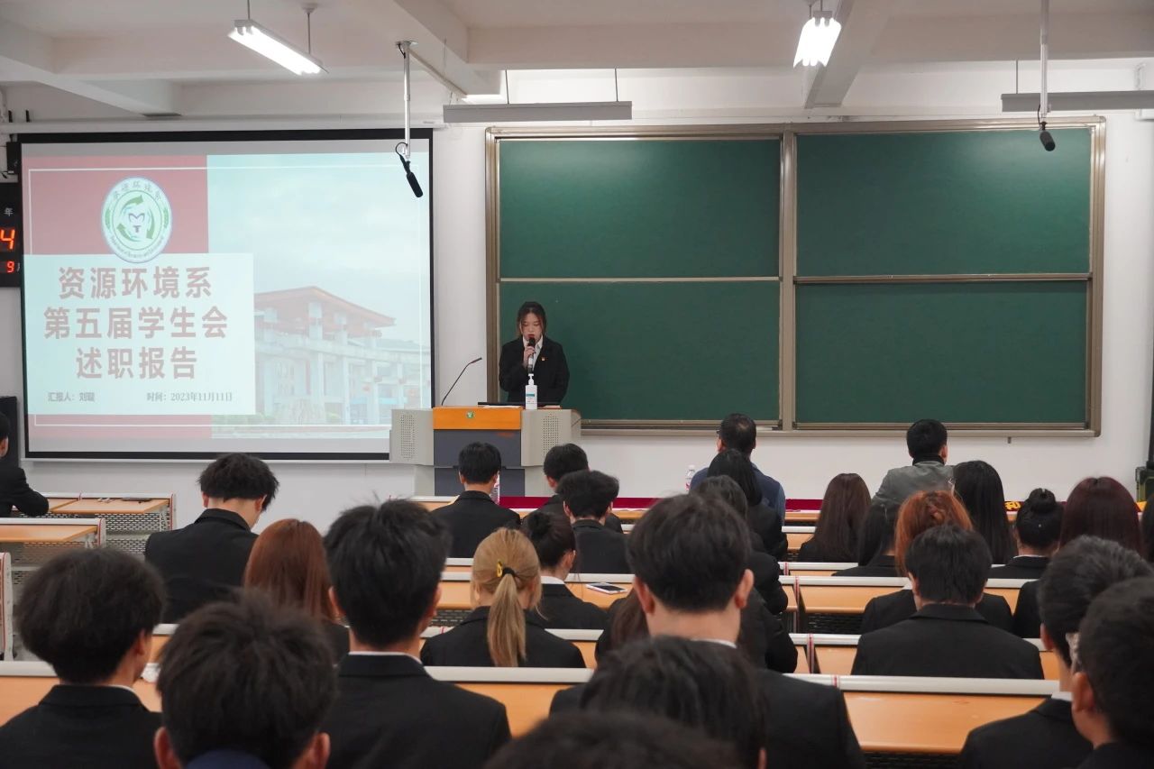 资源环境系第五届学生会主席刘璇做述职报告。她对过去一年学生会工作中的不足与收获做出总结,对学生会成员的工作成果与工作表现予以充分的肯定。她希望新一届学生会干部及干事能够接好为学生服务的接力棒,继承和发扬优良传统,在秉承中谋创新,在创新中谋发展,团结一致,精诚合作,让学生会的工作更上一层楼。