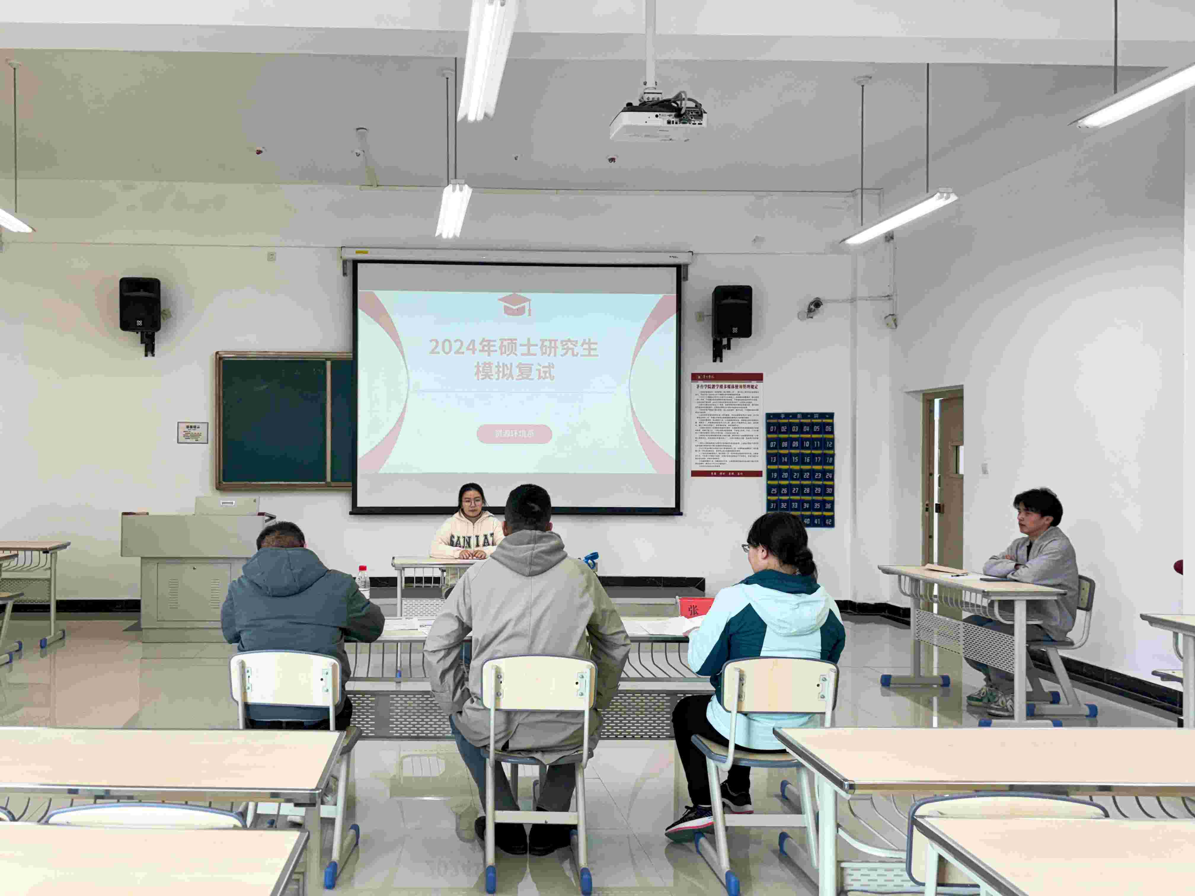 在硕士研究生模拟面试环节,8位党员教师担任面试官,14位考研上线学生按专业分组开展了模拟。面试现场按照研究生复试的要求、细则和流程进行模拟,学生们从中英文自我介绍、专业知识、学术经历及综合素质等方面展示个人能力。面试老师们结合学生的考研成绩、报考院校和现场表现等方面给予了细致的点评与指导,指出了存在的问题和不足,并给出了具体的改进建议和意见,同时勉励同学们要保持平和的应试心态,以更加积极认真的态度做好复试准备。