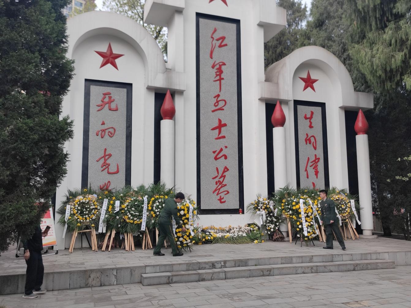 资源环境系学生退伍军人代表张家骏、陈国林向烈士敬献花圈。全体党员师生在纪念碑前为革命烈士敬献鲜花、默哀鞠躬,表达对革命先烈的沉痛哀悼和深切怀念。