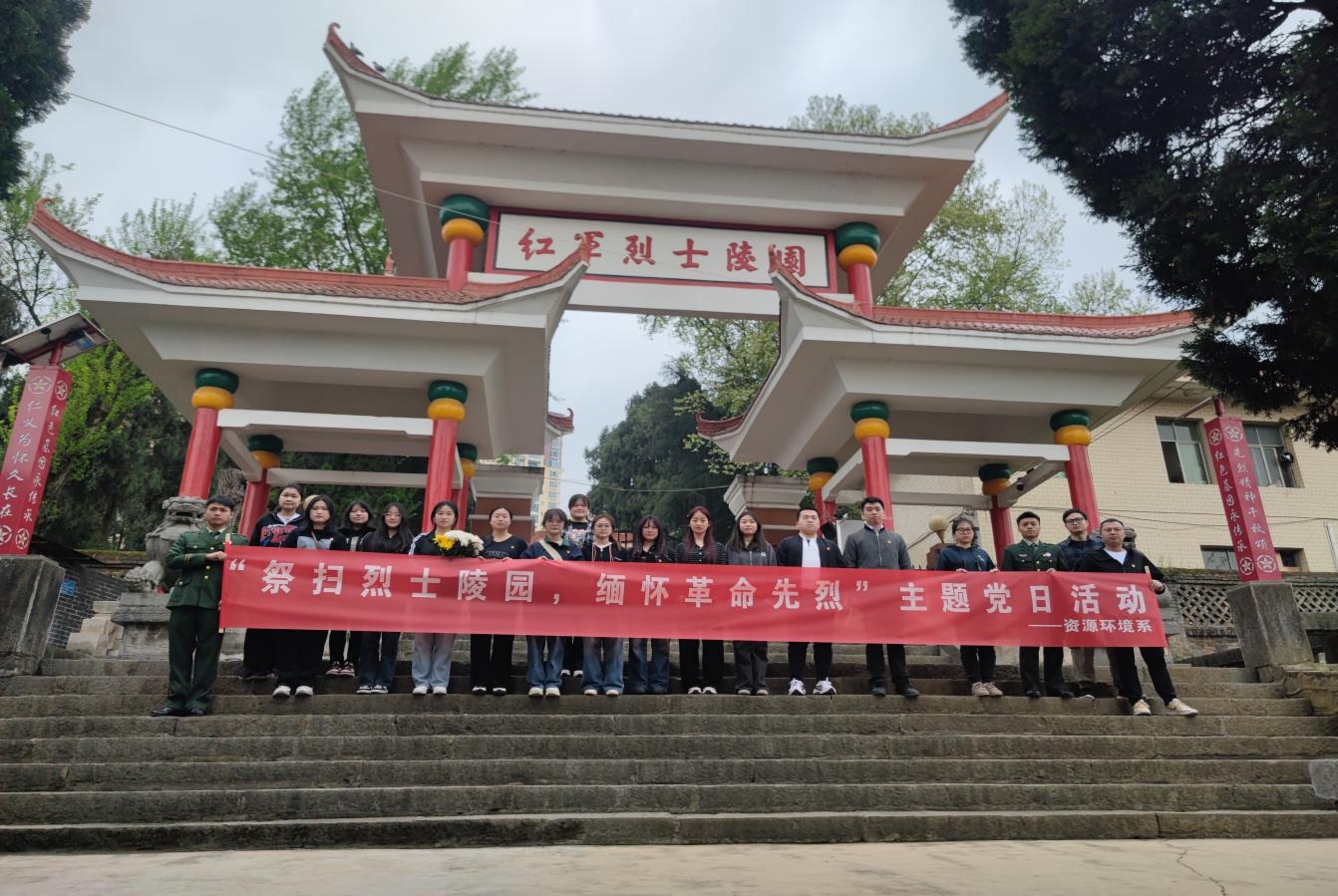 清明节到来之际,为进一步加强党性教育,致敬英雄、感恩先烈,引导广大师生传承优良革命传统,2024年4月1日上午,资源环境系学生党支部赴鲁班红军烈士陵园开展清明节祭扫活动。