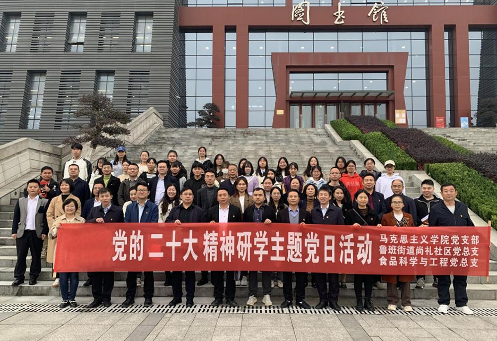 为深入学习贯彻党的二十大精神,坚定党员同志理想信念,提升党员同志政治判断力、政治领悟力、政治执行力,11月22日,学校马克思主义学院党支部、鲁班街道尚礼社区党总支与食品科学与工程系党总支在学校图书馆报告厅联合开展党的二十大精神研学主题党日活动。三个支部全体党员、入党积极分子参加此次主题党日活动,活动由食品科学与工程系党总支负责人同志主持。