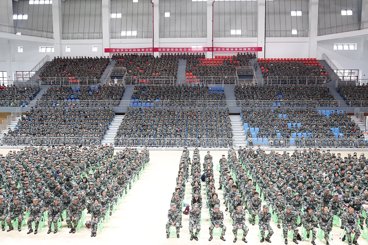 8月30日,我院2019级新生开学典礼暨军训动员大会在体育馆举行,校长封孝伦讲话。