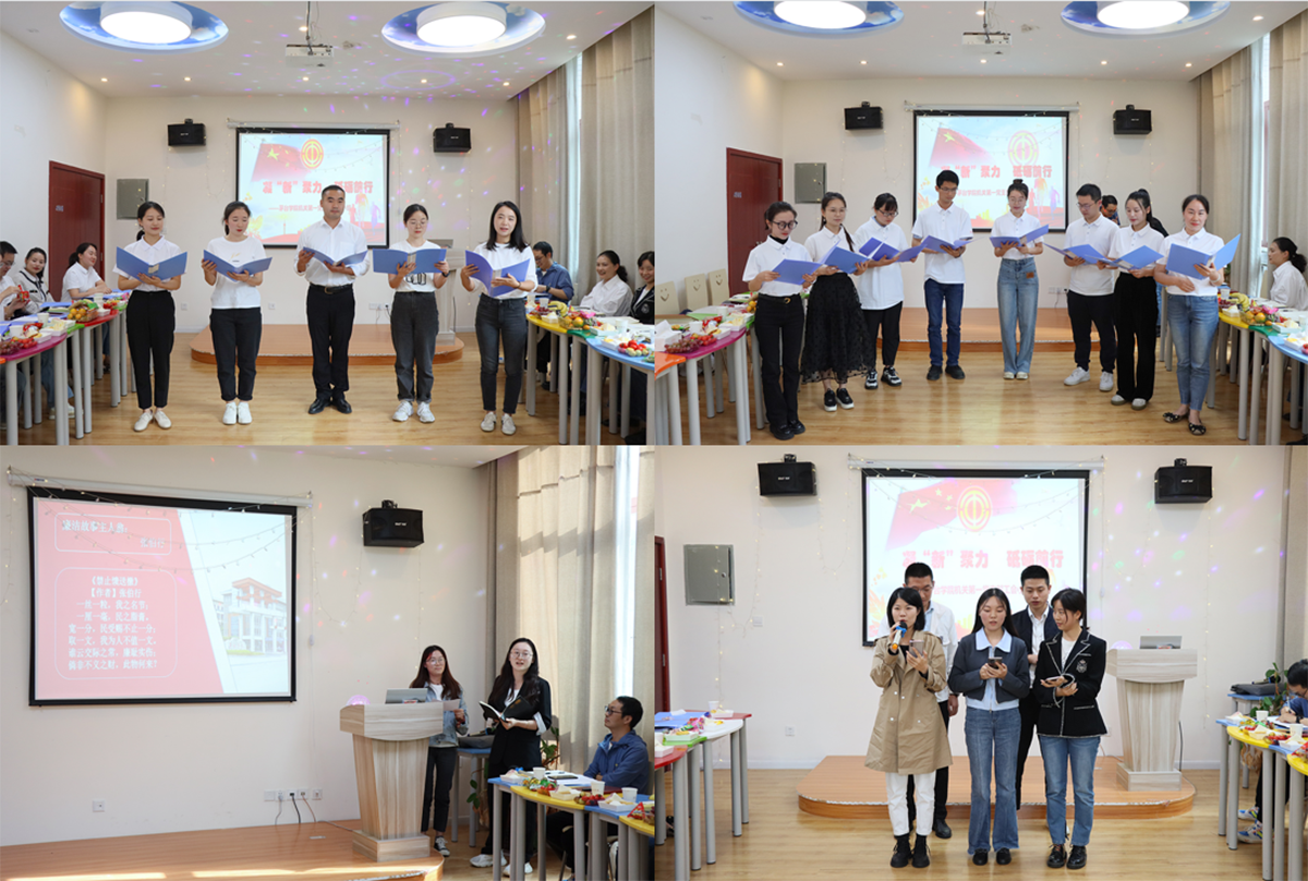 座谈会上,支部四个党小组新进教职工现场表演了诗词朗诵、故事讲说、歌曲演唱等节目,展现了新时代青年教师的朝气与活力,赢得大家阵阵掌声。