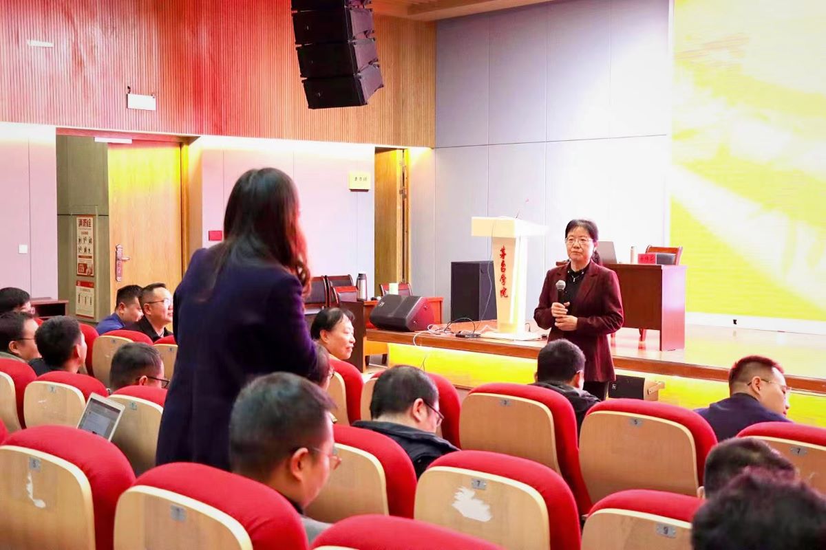 我院党委副书记、纪委书记王维欣和全体教师聆听讲座。