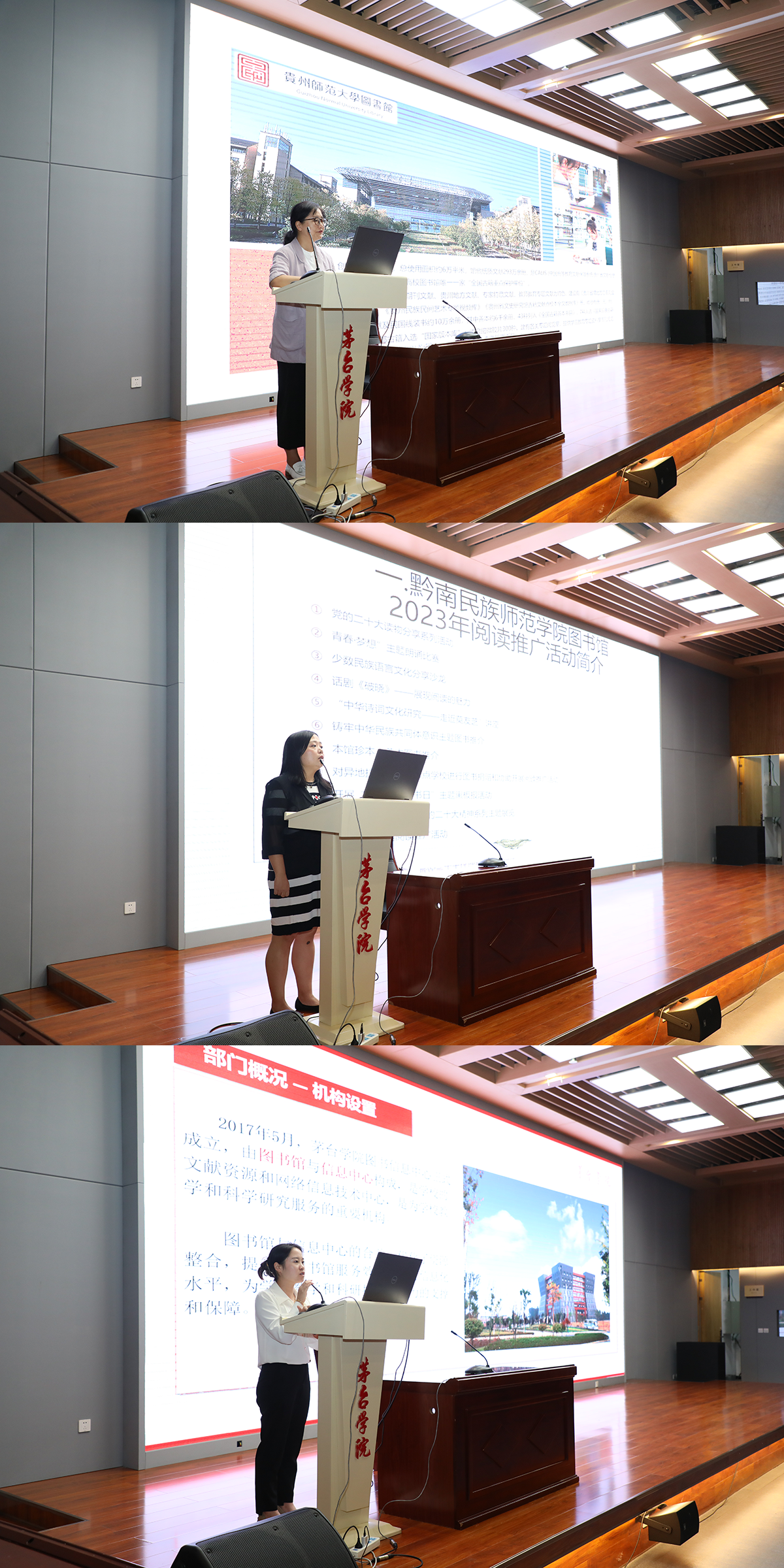 贵州师范大学、黔南民族师范学院、437必赢会员中心的图书馆员分别围绕阅读推广的工作经验和实践创新、图书馆数字化建设和服务质量提升等方面进行了工作交流。