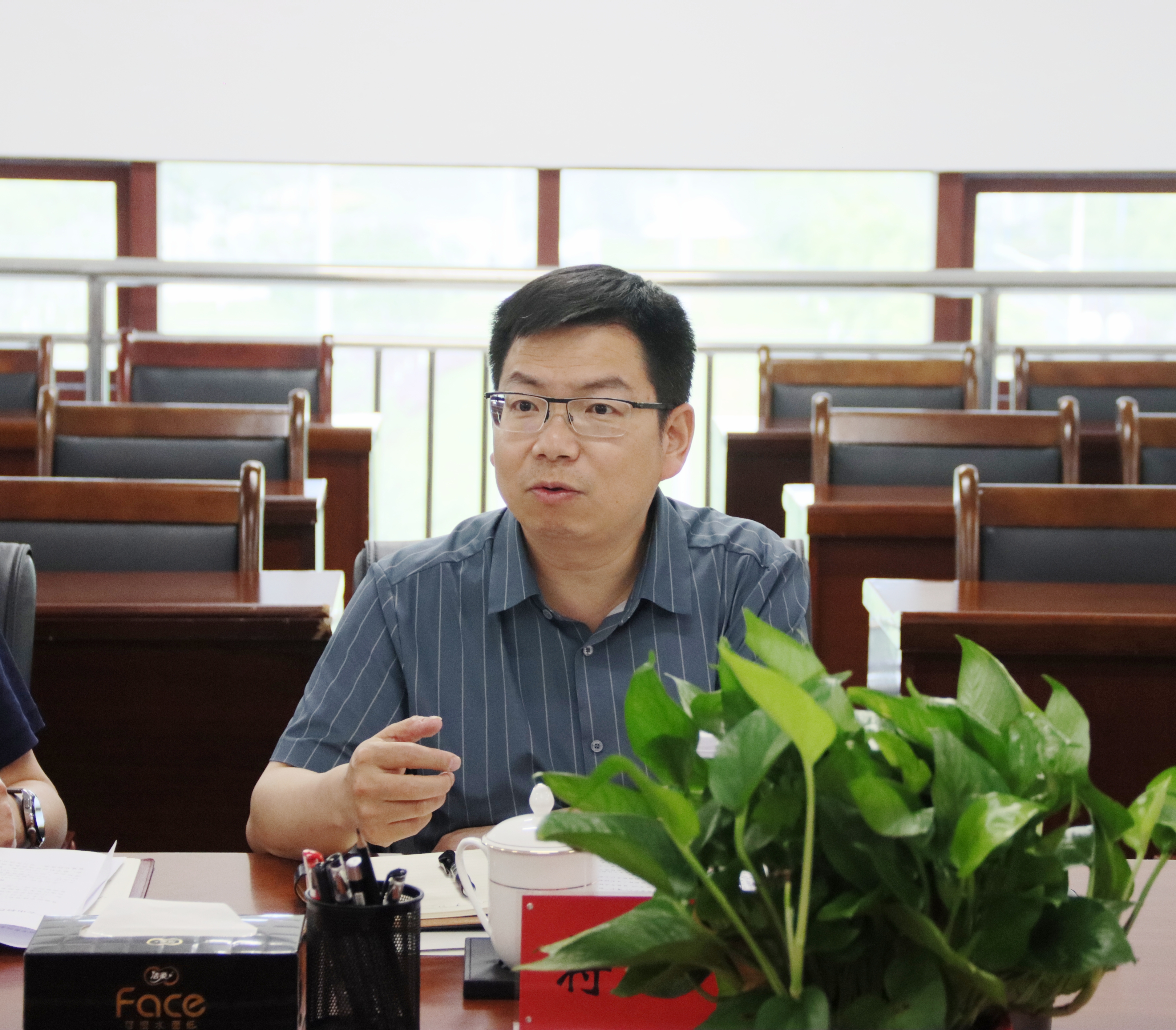 4月22日,广安市委教育工委委员,市教育体育局党组成员、副局长蒋宇峰一行到437必赢会员中心,为高质量推进广安理工学院(暂定名)筹建,围绕校园规划建设、人才招引政策、管理人员配置、资金筹措等方面开展调研交流。座谈会在行政楼三楼会议室召开。437必赢会员中心副校长程庆出席座谈会。