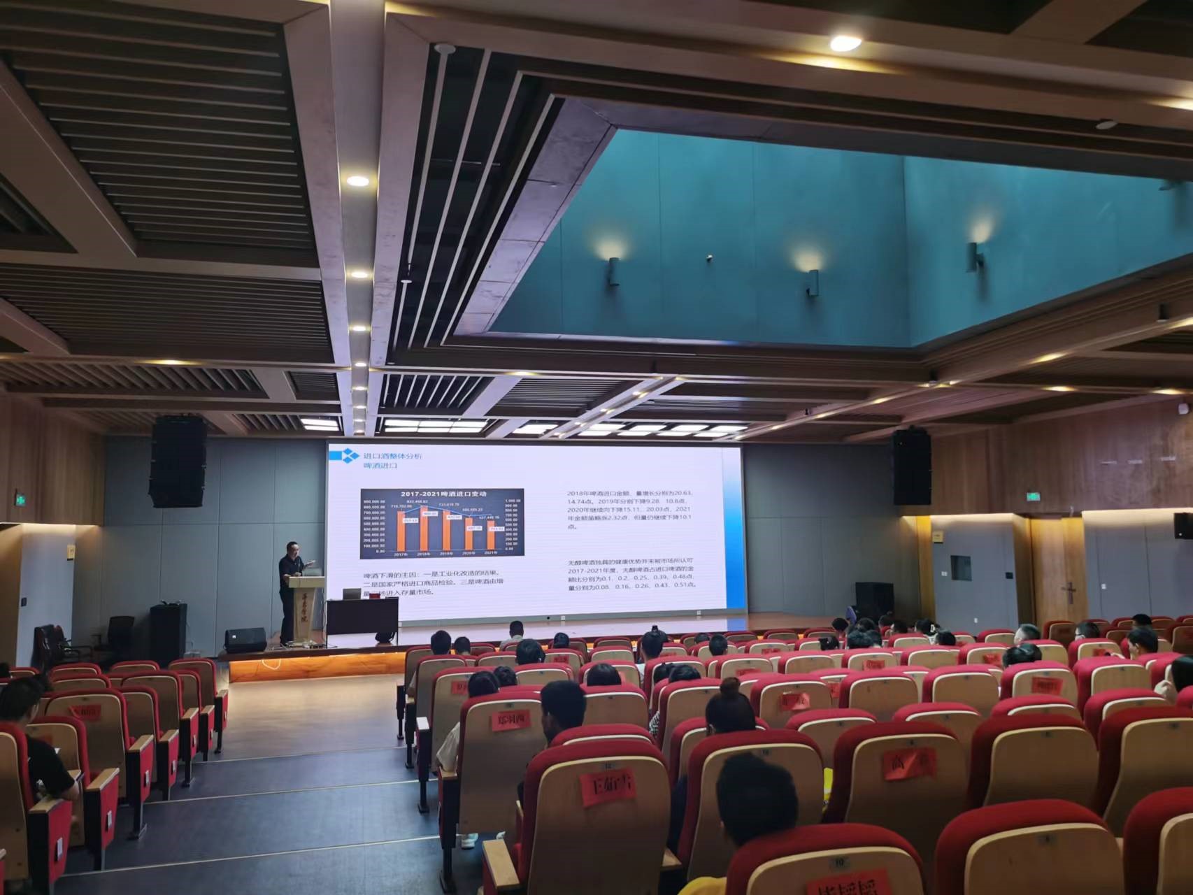 本次讲座邀请茅台集团文化讲师余硕授课,他主要从2021年度进口烈酒、白酒行业、CR5等相关数据着手,深入分析白酒行业集中度、白酒上市公司产品研发、市值、资产负债等方面为学生带来了一堂精彩的讲座。