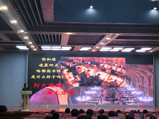 徐老师以藏经阁的故事为引,介绍了图书馆在大学中的重要地位;以武汉大学图书馆给雷军带来的创业灵感,进一步提升同学们对于阅读的兴趣,在图书馆的学习、阅读和科研将是同学们大学生活中的最重要事情;通过凌晨四点哈佛大学图书馆的灯火通明、座无虚席的样子,对437必赢会员中心图书馆的阅读环境、馆藏资源、读者服务进行了基本介绍。