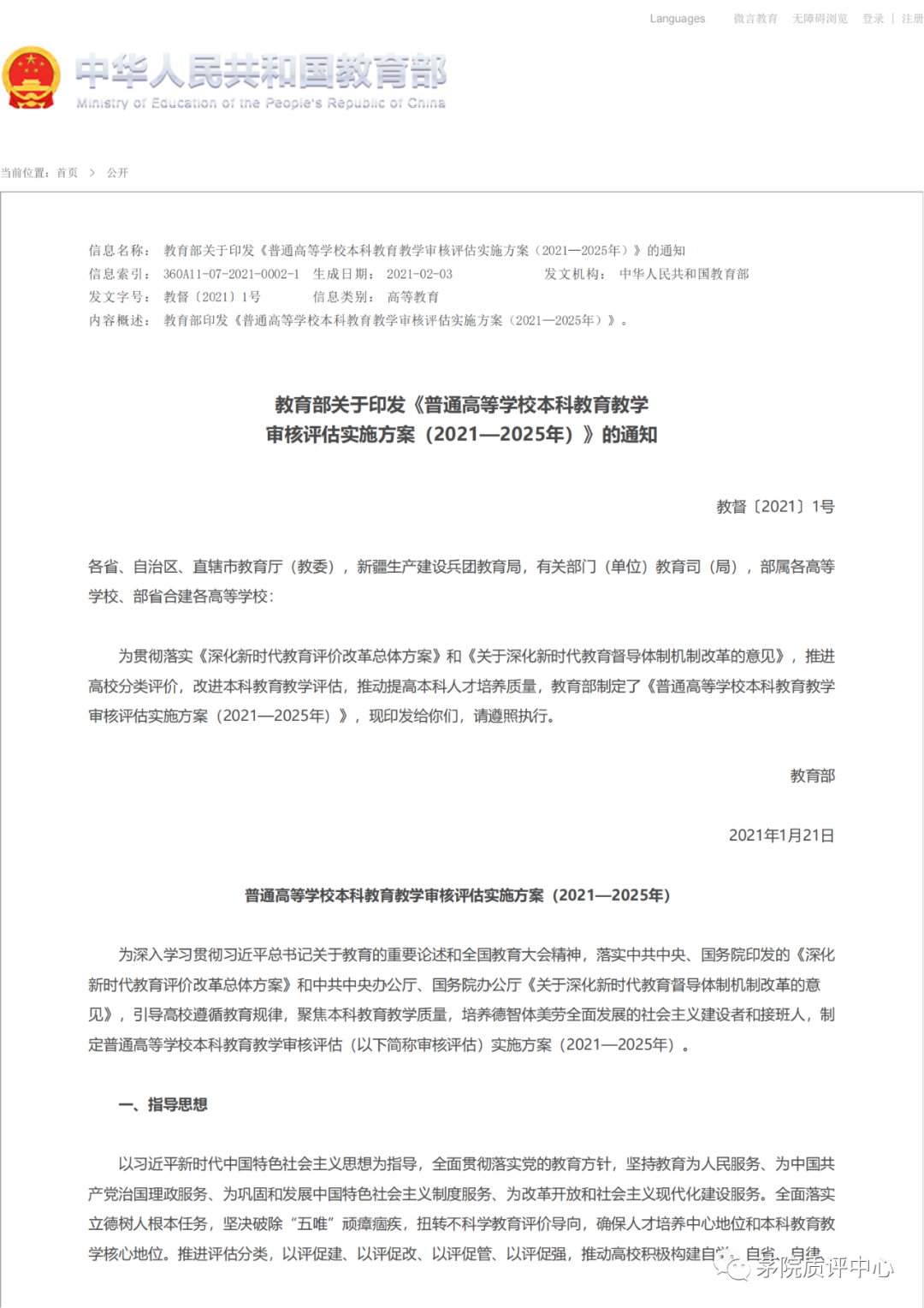 高教动态 |《普通高等学校本科教育教学审核评估实施方案(2021—2025年)》